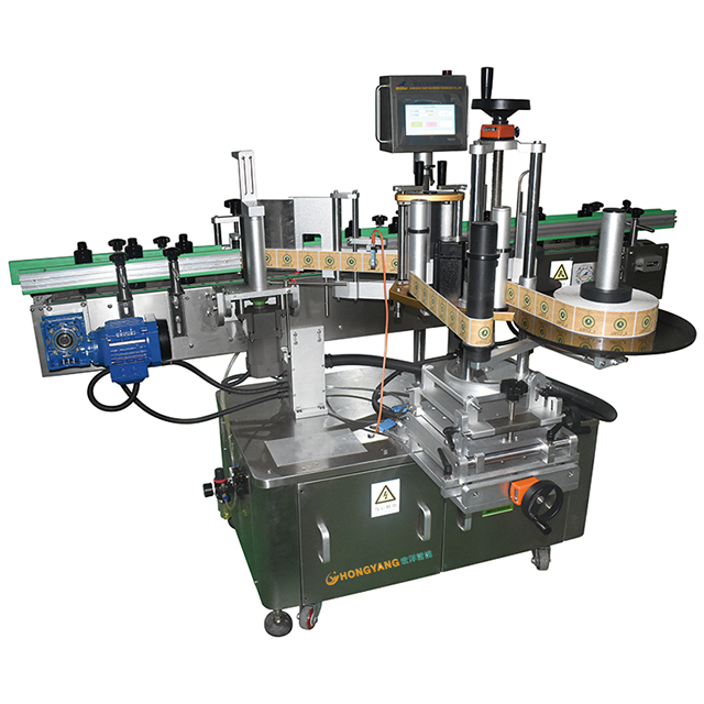 采用动力圆胶轮滚搓式压标,保证贴标精度及效率,可选皮带式夹持,完美解决方瓶搓标的长短轴问题